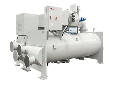 چیلر ال جی مدل سانتریفیوژ مغناطیسی دور متغیر به صورت کندانسور آب خنک بوده و با توجه به استفاده از یاتاقان های مغناطیسی بدون نیاز به روغن کار می کند. این دستگاه عموما در پروژه های عظیم و نیروگاه ها استفاده می گردد و یکی از کم مصرف ترین سیستم های تراکمی تهویه مطبوع در دنیا می باشد.